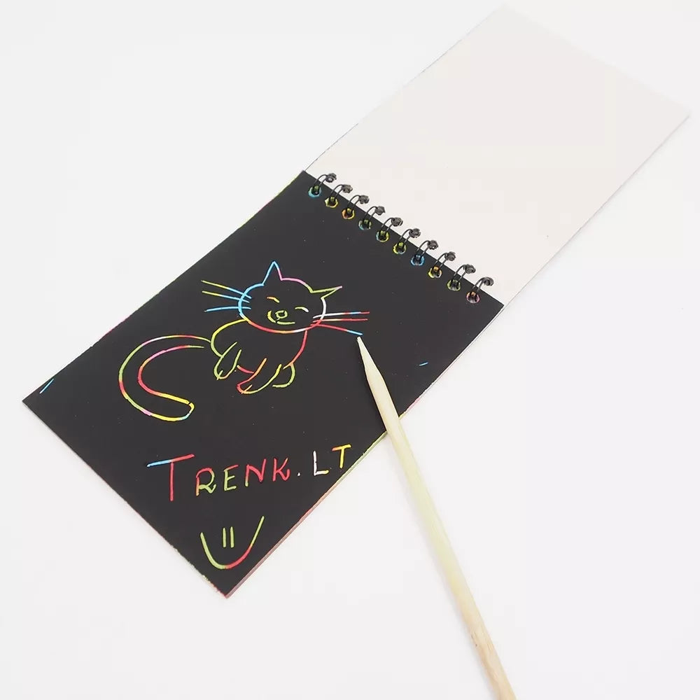 - „Scratch book“ knygelė yra puiki dovana vaikams nuo 3 metų.