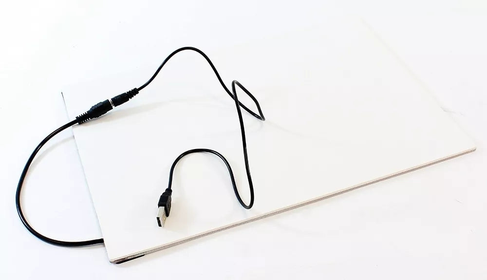 Medžiaga: akrilasGalia: 3WMaitinimo šaltinis: 4.5V iš "microUSB" prievadoLentos matmenys: 31 cm x 21 cmKorpuso storis: 5 mmDarbo zona: 21 x 29,7 cm (standartinis A4)Spalva: balta