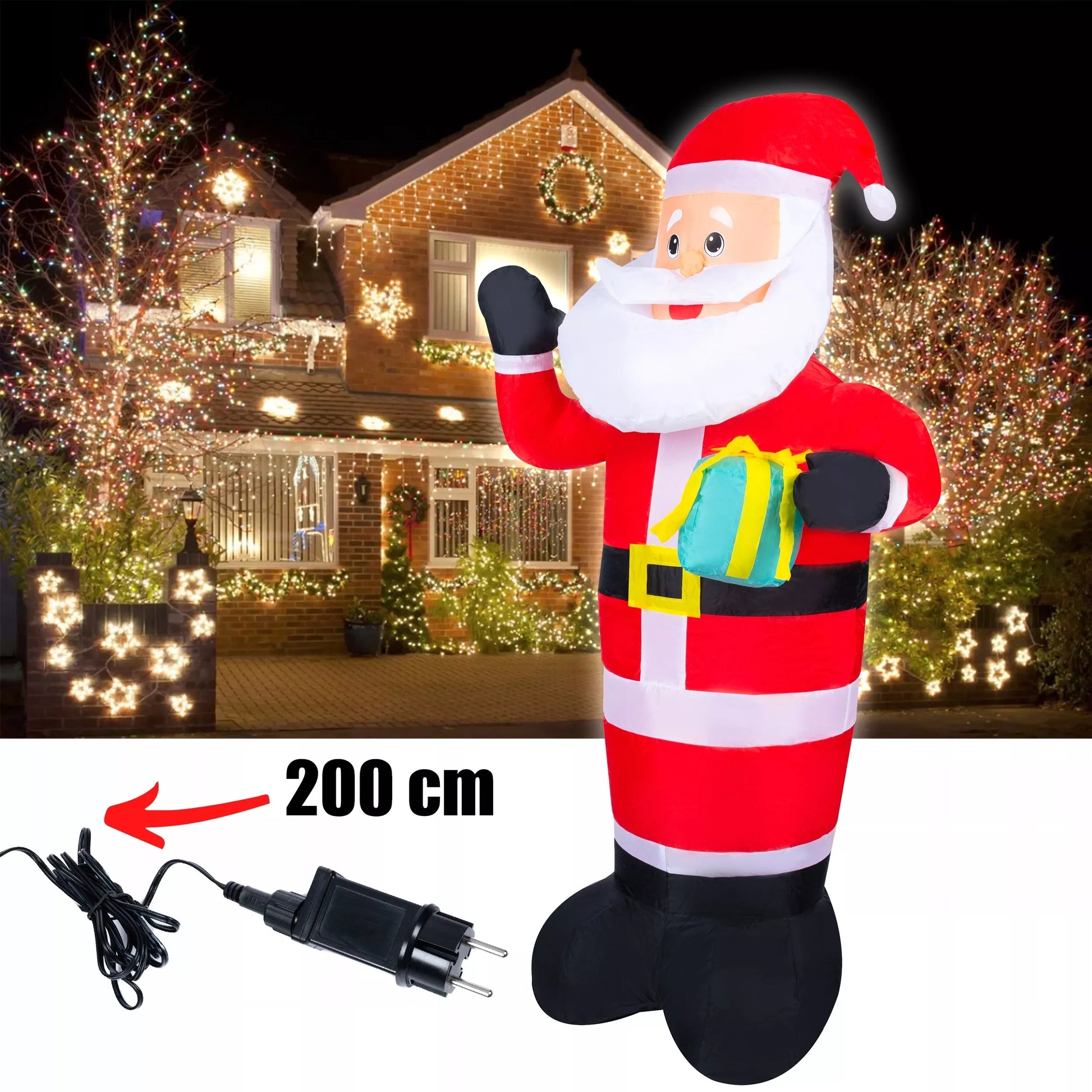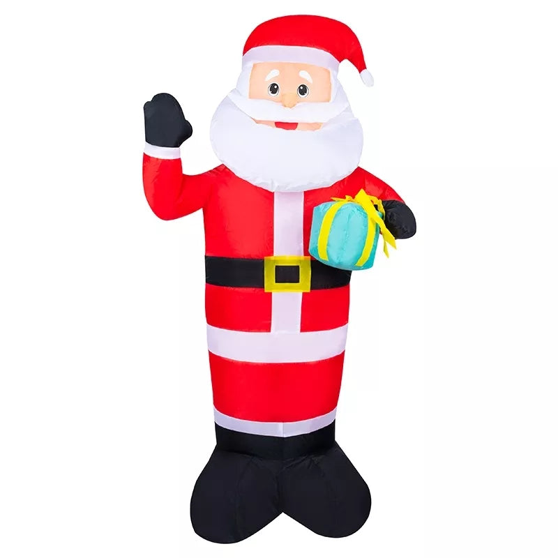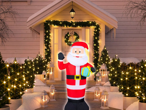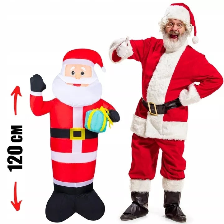 Pripučiamas Kalėdų Senelis su LED apšvietimu. Tinka naudoti viduje ir lauke. Dekoracijoje yra įmontuotas pūstuvas, kuris automatiškai užpildo orą. Dėl didelio dydžio Kalėdų Senelis aiškiai matomas net iš toli.