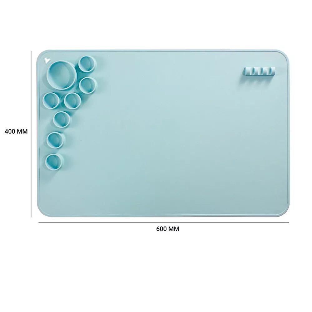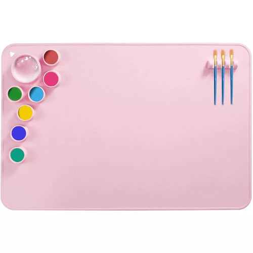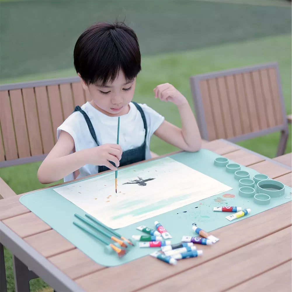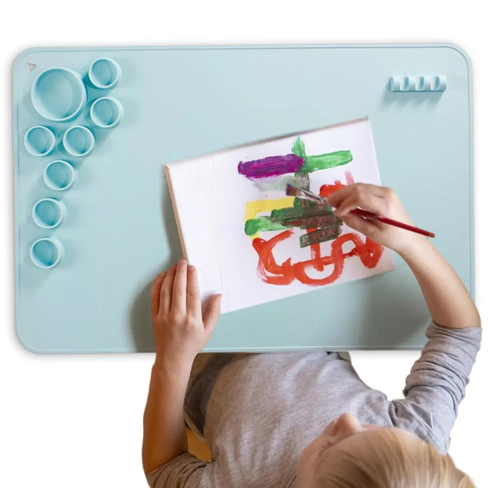 - Silikoninis vaikų tapybos kilimėlis su dažų indeliais.