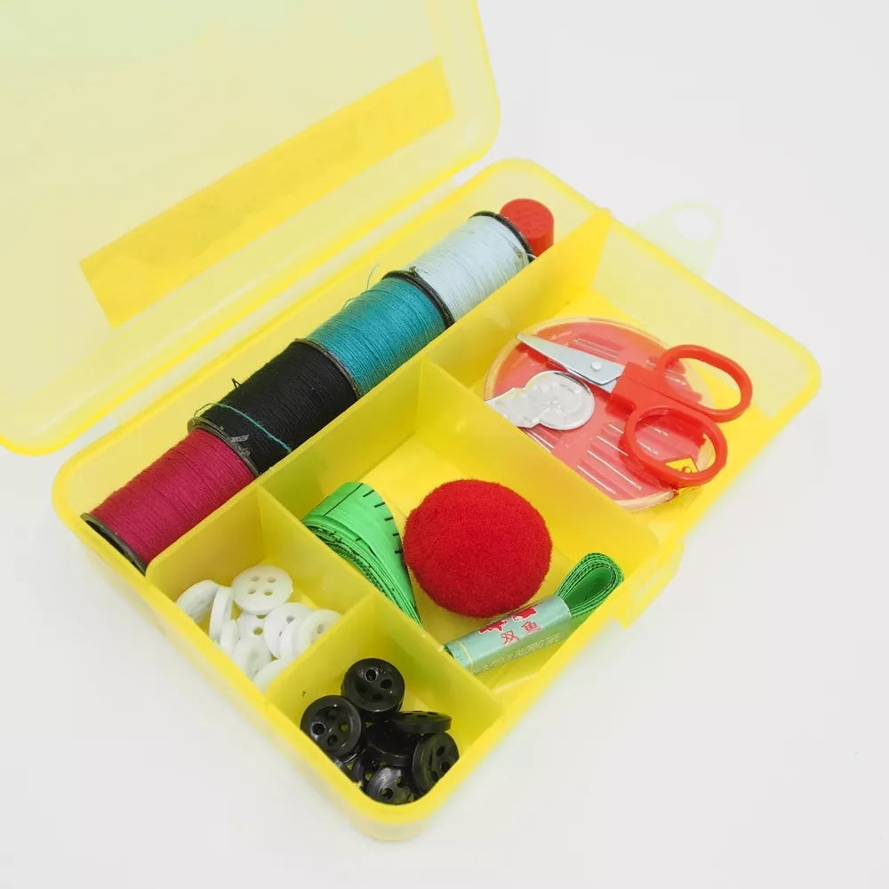 Pilnas siuvimo rinkinys, kuriame yra net 30 elementų. Puiki dovana siuvimo entuziastams. Praktiškoje plastikinėje dėžutėje, telpa daugybė priedų (adatos, siūlai, segtukai, sagos, žirklės, matavimo juosta ir kt.).