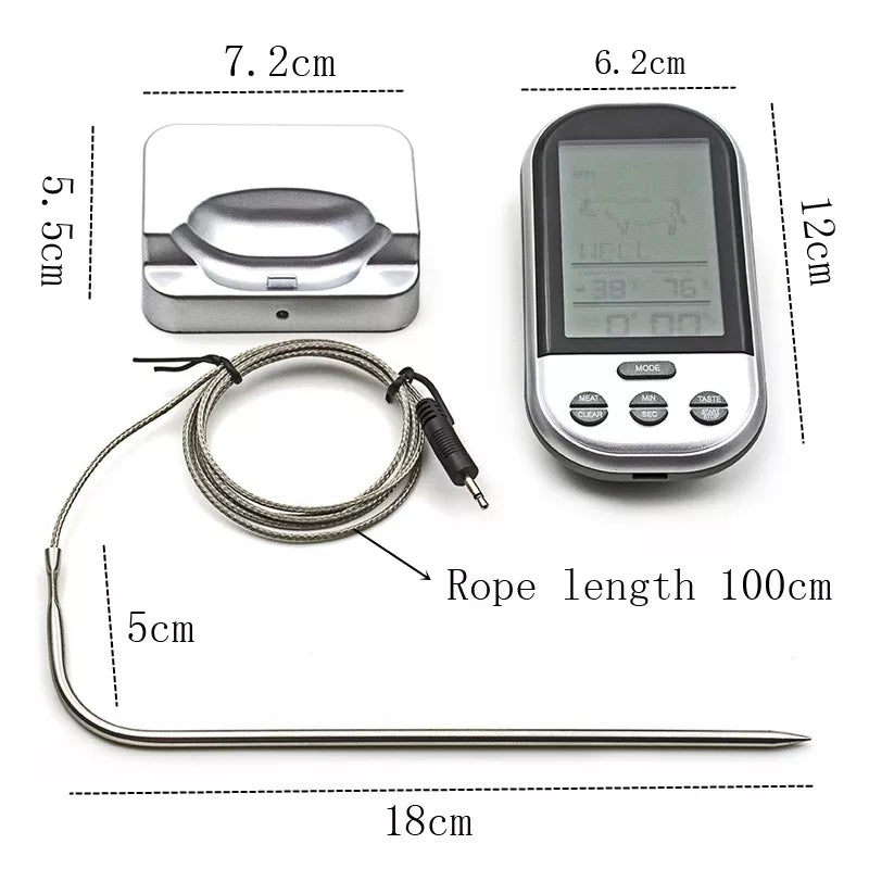 Elektroninis, tikslus termometras su LCD ekranu, puikiai tinka maisto ruošimui. Idealiai tinka matuoti temperatūrą mėsos, bei kitų paruoštų patiekalų.