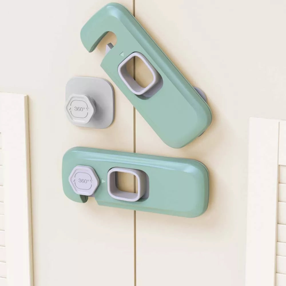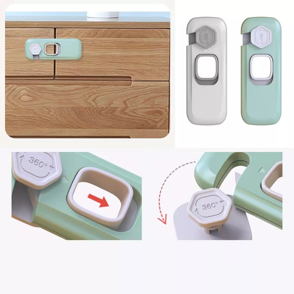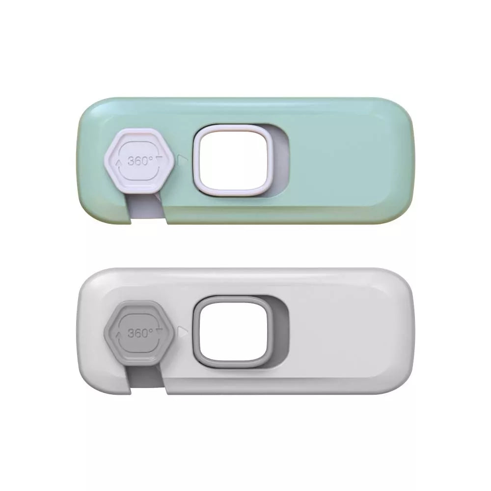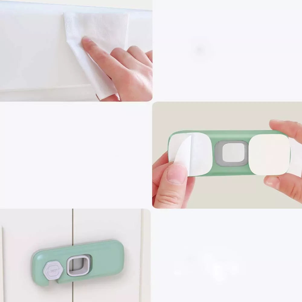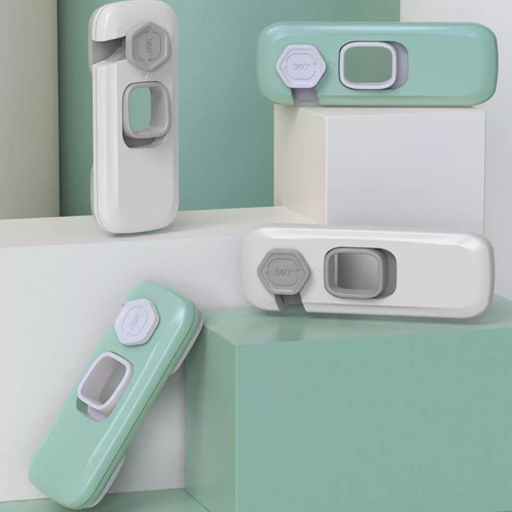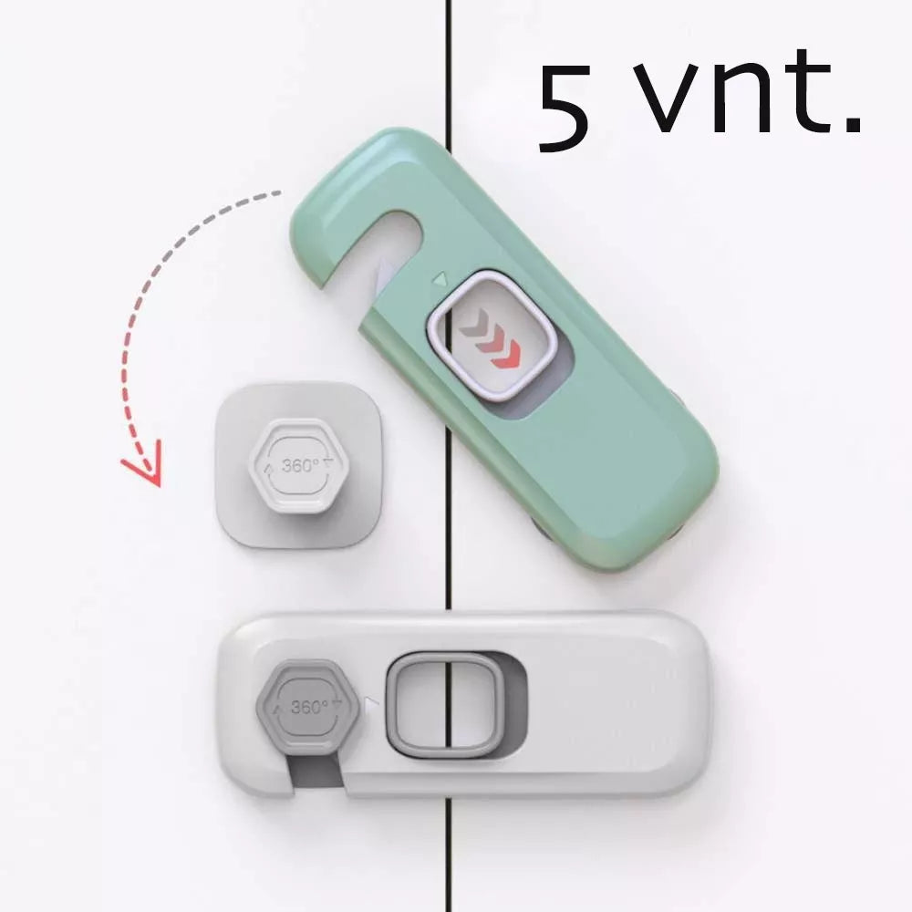 Spintelių ir stalčių apsauga, kad jų neatidarytų maži vaikai. Apsauga turi paspaudžiama jungtį, leidžiančią pritvirtinti apsaugą bet kur, naudojant dvipusę juostą. Užraktas tvirtai laikosi ant bet kokio paviršiaus.