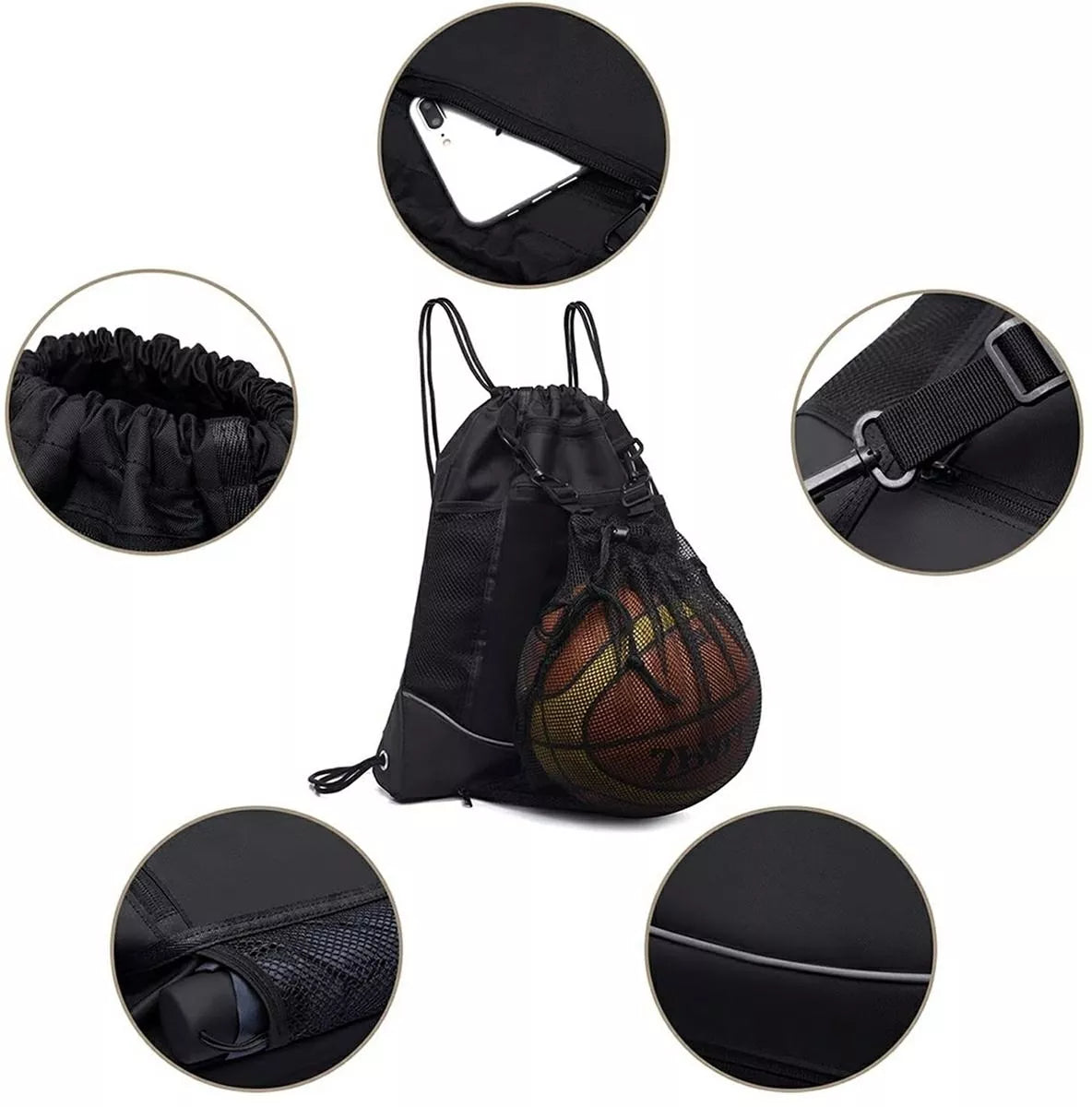 Funkcionalus, sulankstomas sportinis krepšys su užtrauktuku. Galima naudoti kaip klasikinę kuprinę su erdviu pagrindiniu skyriumi. Didelė tinklinė kišenė leidžia lengvai įsidėti kamuolį. Pagaminta iš tvirtos medžiagos, atspari dilimui ir sunkioms oro sąlygoms.
