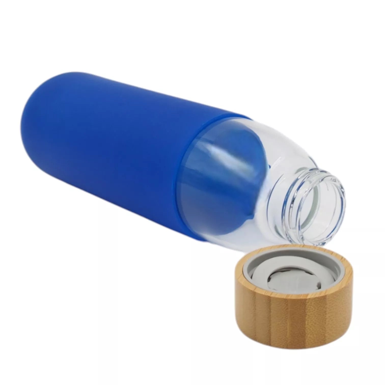 Stilinga ir ekologiška stiklinė gertuvė su natūralaus bambuko dangteliu bei ryškiai mėlyna silikonine apsauga. Puikiai tinka kasdieniam naudojimui, darbui, sportui ar kelionėms.