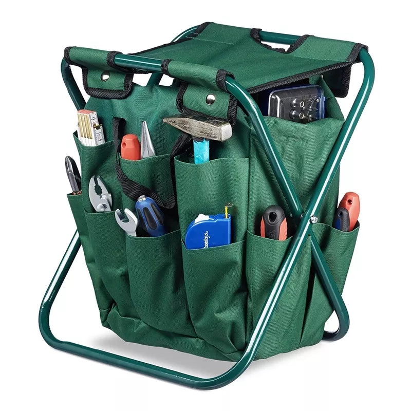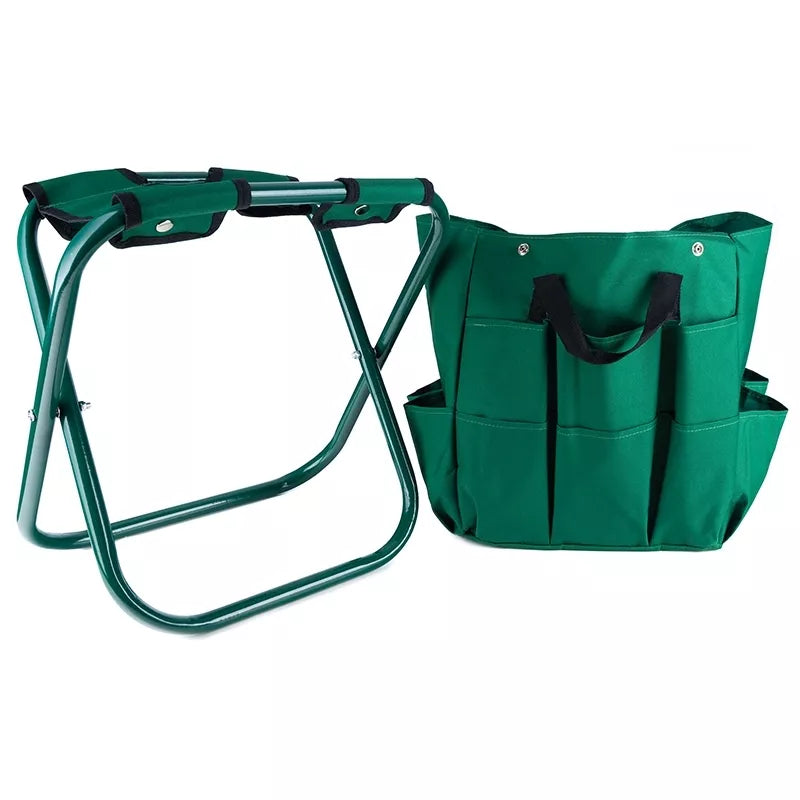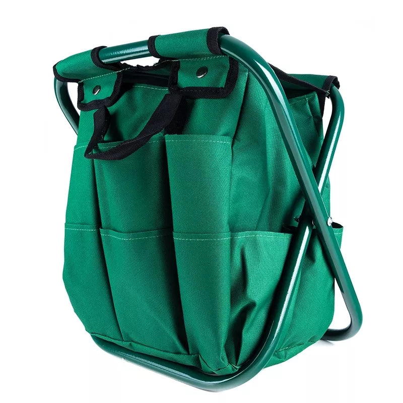 Sulankstoma sodo taburetė su krepšiu