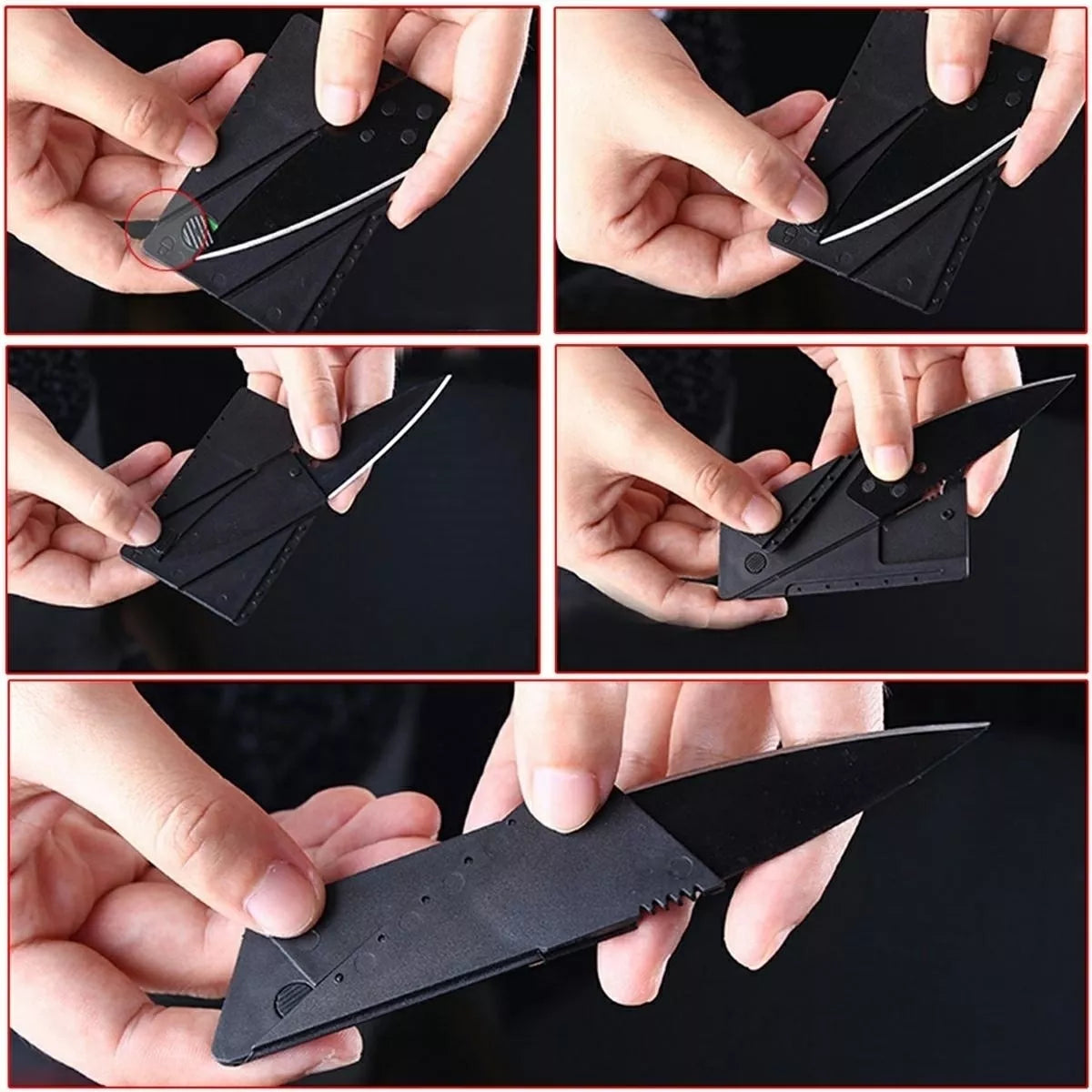 Mažo dydžio sulankstomas peilis / išgyvenimo kortelė, tinkanti nešiotis piniginėje. Dėl šios priežasties jį visada turėsite su savimi kritiniu atveju!