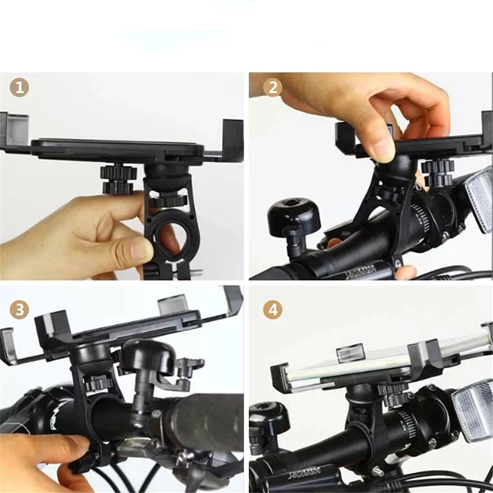 Universalus dviračio telefono laikiklis. Pagaminta iš aukštos kokybės plastiko, atsparaus sudėtingoms oro sąlygoms. Galimybė keisti rankenos plotį, suktis aplink jos ašį 360 laipsnių plokštumoje ir reguliuoti pasvirimą pagal vartotojo poreikius. Tinka visiems išmaniesiems telefonams, kurių ekrano įstrižainė nuo 4,5 iki 6,5 colių. Lengvas montavimas ant dviračio vairo naudojant laikiklį su spaustuku.