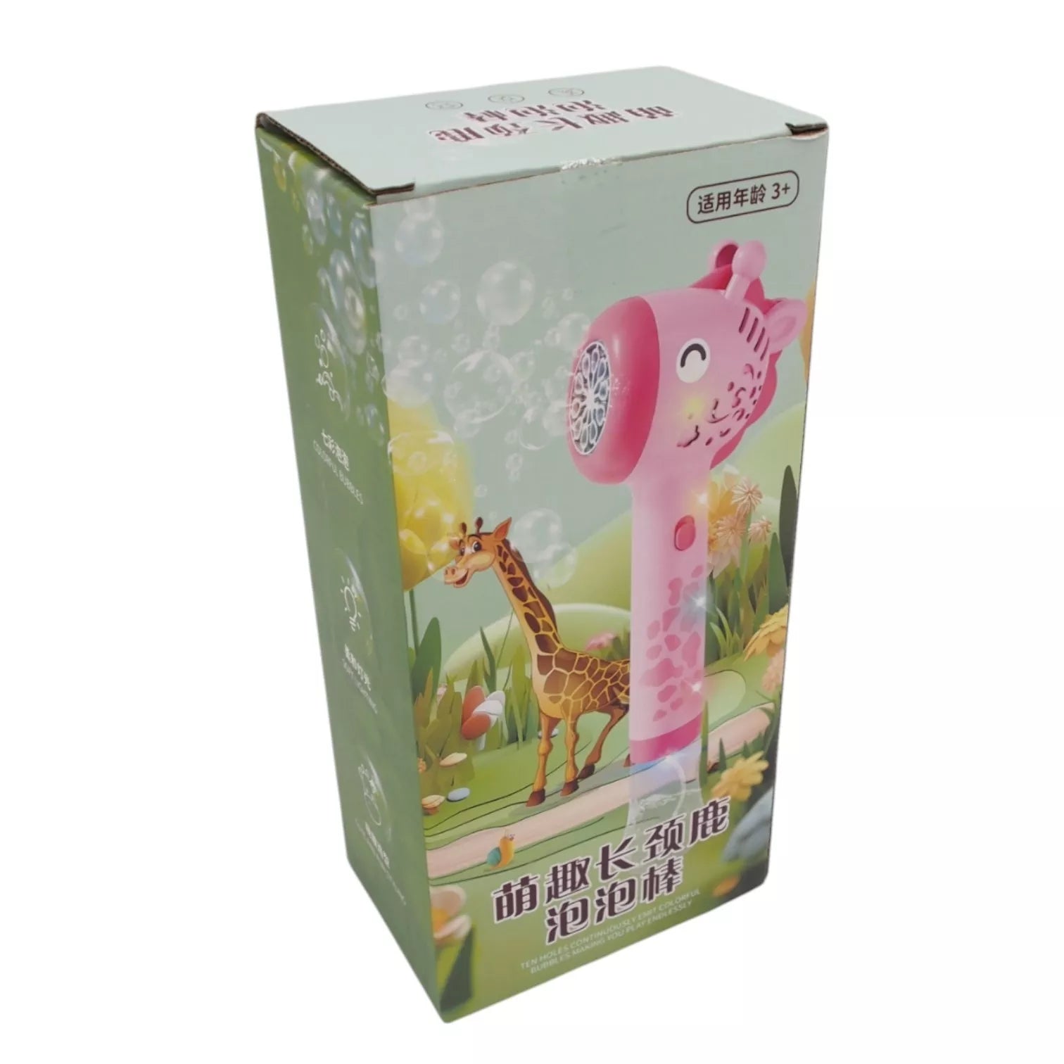 Linksmas ir spalvingas muilo burbulų pūtimo aparatas suteiks vaikams daug džiaugsmo ir juoko! Žaislas pagamintas žirafos formos, todėl atrodo itin žaismingai ir patiks mažiesiems. Tereikia įpilti muilo skysčio, paspausti mygtuką, ir žaislas pradės pūsti daugybę burbulų, kurie sukurs stebuklingą atmosferą žaidimų metu.