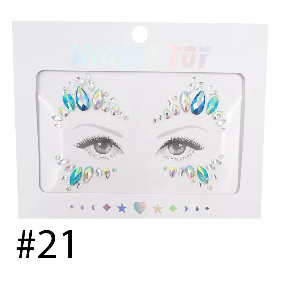 Papuošalai veidui yra lipnūs, todėl veido kristalus lengva prilipti, tiesiog nulupkite nuo pagrindinio popieriaus ir priklijuokite pagal dizainą. Lipdukai atsparūs prakaitui ir vandeniui. Brangakmeniai yra skirti iki 8 valandų nešiojimo. Galima pakartotinai naudoti su blakstienų ar kūno klijais. Taip pat galite naudoti blakstienų klijus, kad padidintumėte lipnumą ir išvengtumėte nukritimo.