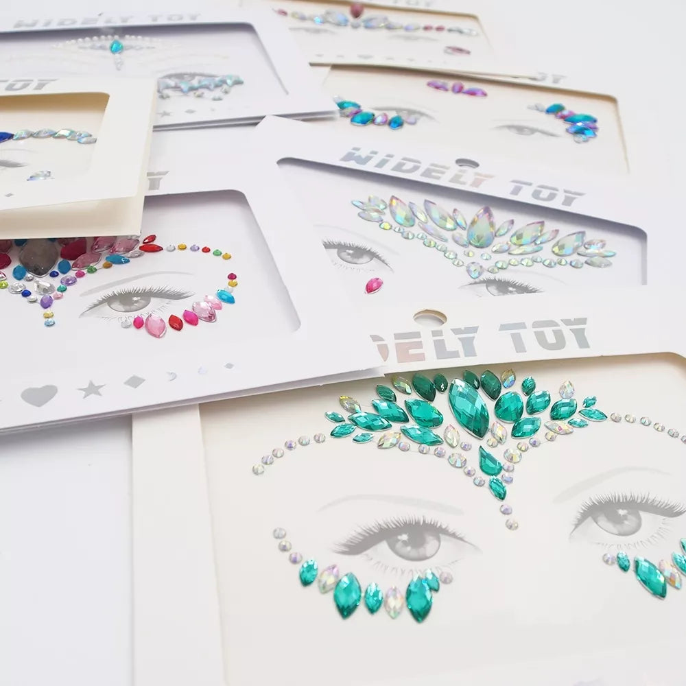 Papuošalai veidui yra lipnūs, todėl veido kristalus lengva prilipti, tiesiog nulupkite nuo pagrindinio popieriaus ir priklijuokite pagal dizainą. Lipdukai atsparūs prakaitui ir vandeniui. Brangakmeniai yra skirti iki 8 valandų nešiojimo. Galima pakartotinai naudoti su blakstienų ar kūno klijais. Taip pat galite naudoti blakstienų klijus, kad padidintumėte lipnumą ir išvengtumėte nukritimo.